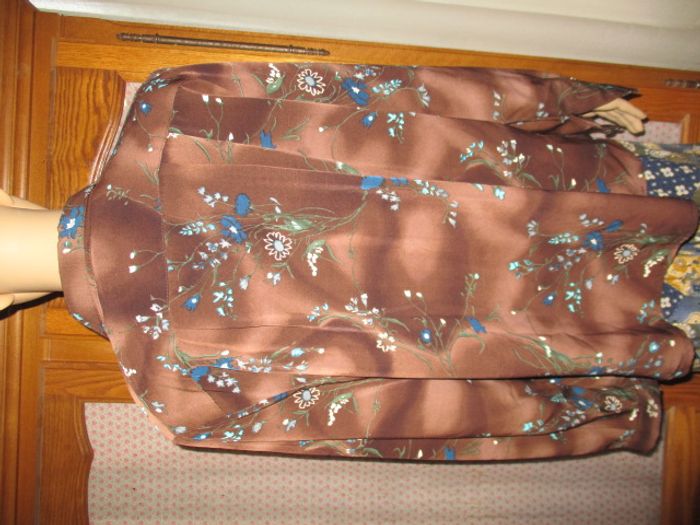 Chemisier manche long . 100 % polyester taille 40 .tout neuf...sans marque couleur .MARRON /MULTICOLOR .. 63 cm aisselle a aisselle 69 cm de long