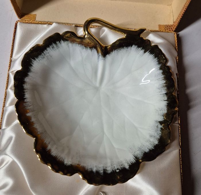 Ancienne coupelle vide poche feuille en porcelaine de limoges blanc et or areor