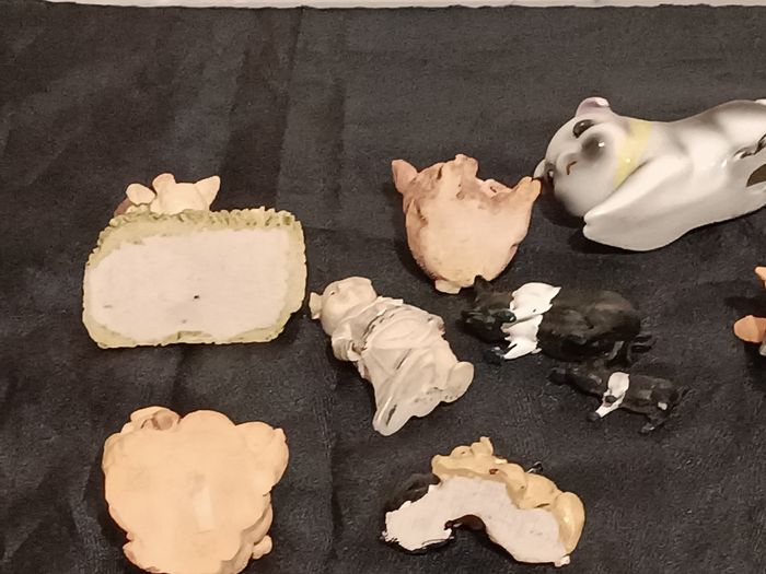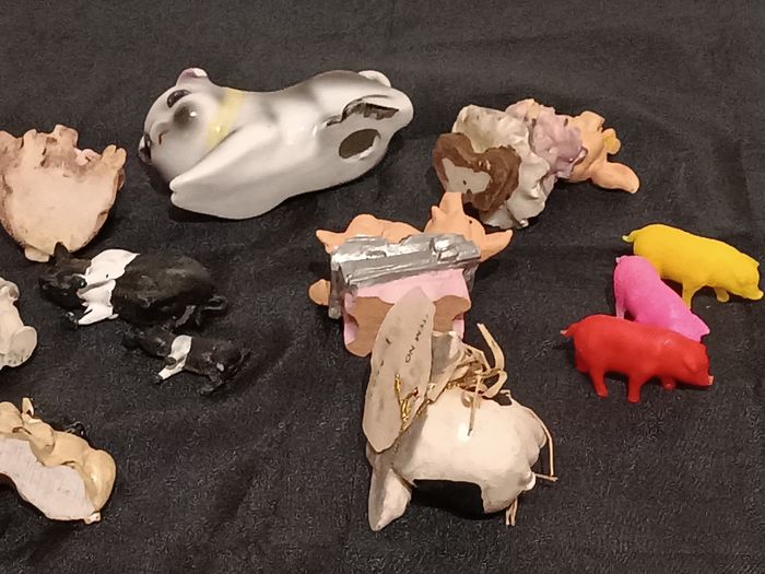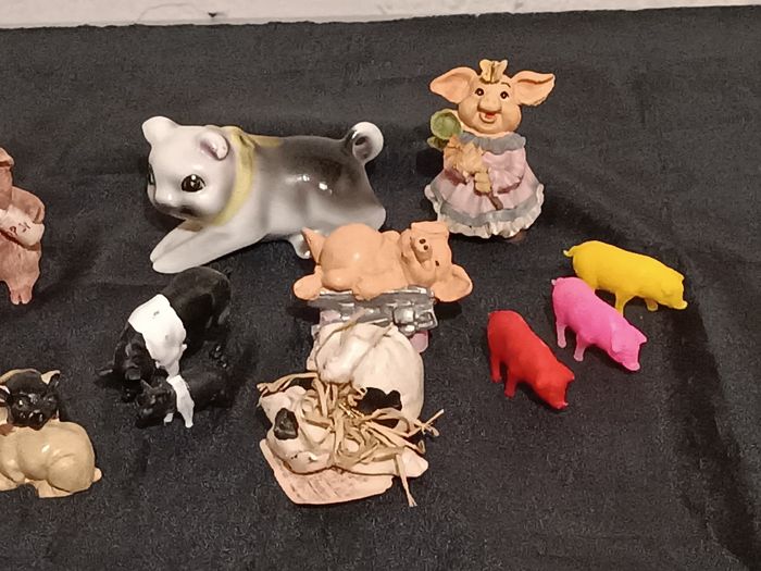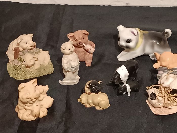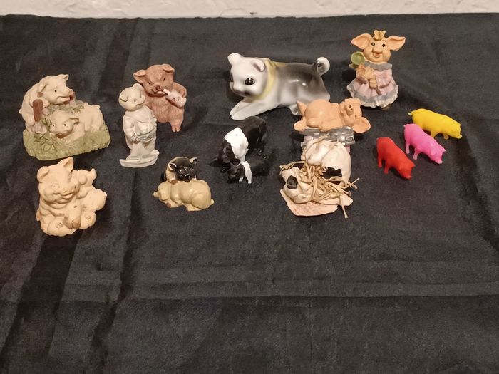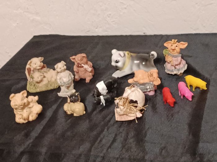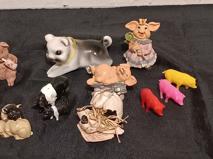 Lot de cochons en résine et porcelaine, plastique en bon état cf photos
