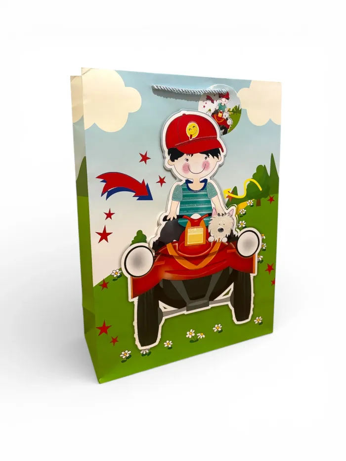 Sac cadeau anniversaire motifs enfant et chien quad 30 x 41,5 x 12 cm Neuf