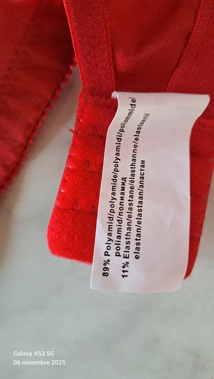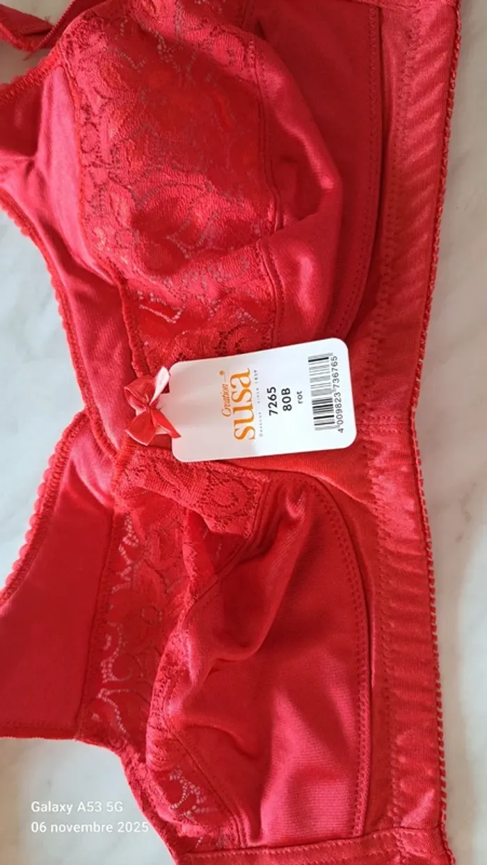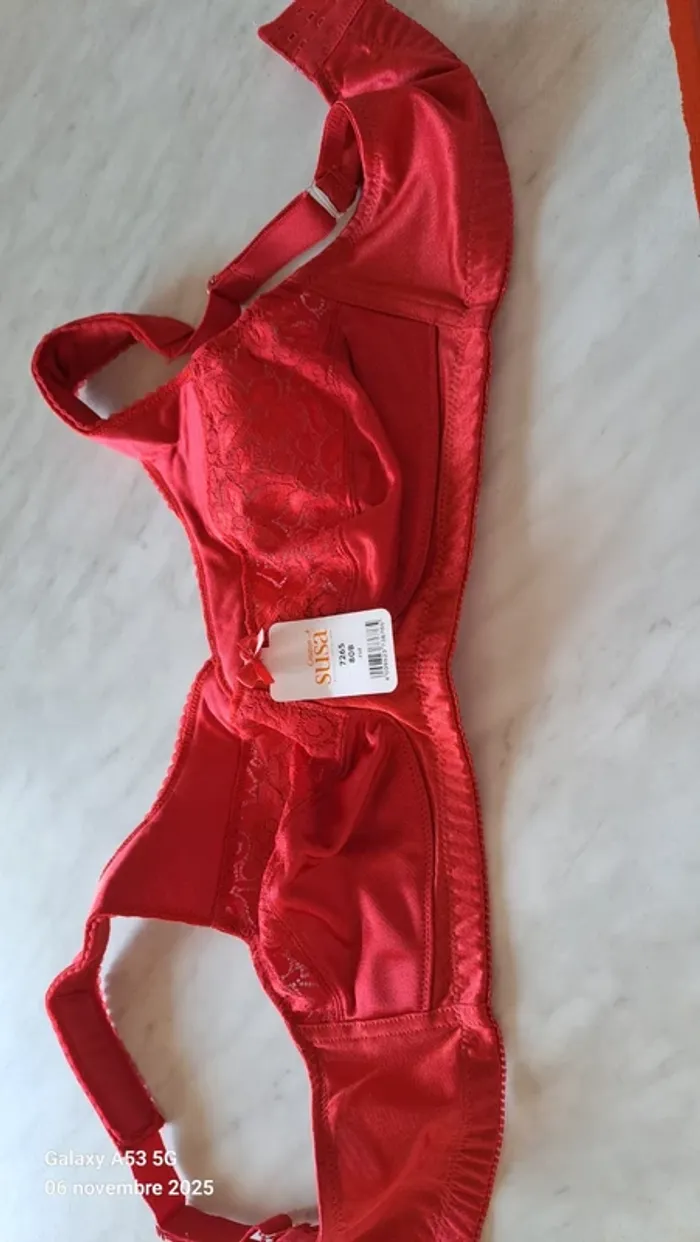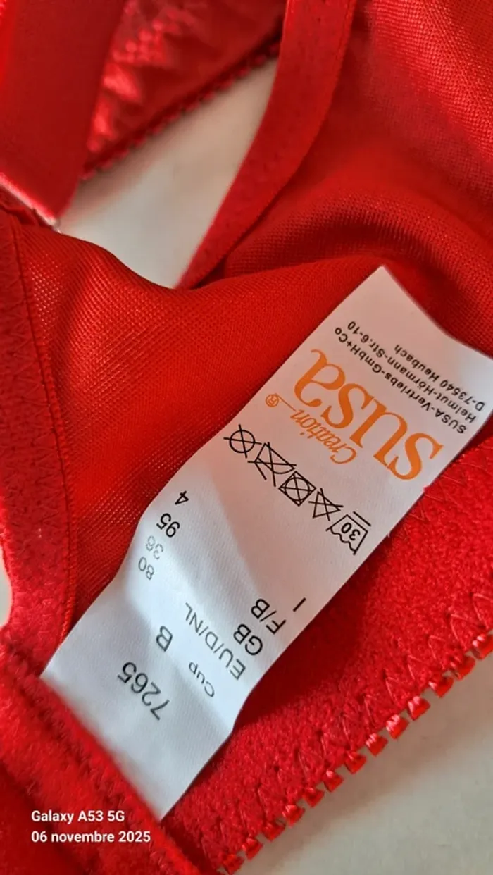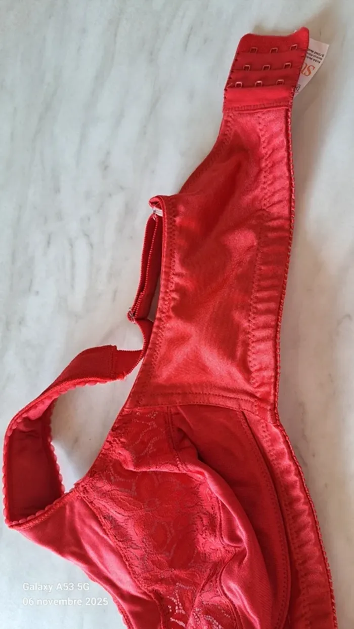 Soutien gorge rouge bordeaux, Création Susa, neuf, sans armature, emboitant, 95 B, 70 cm d'une extrémité à l'autre