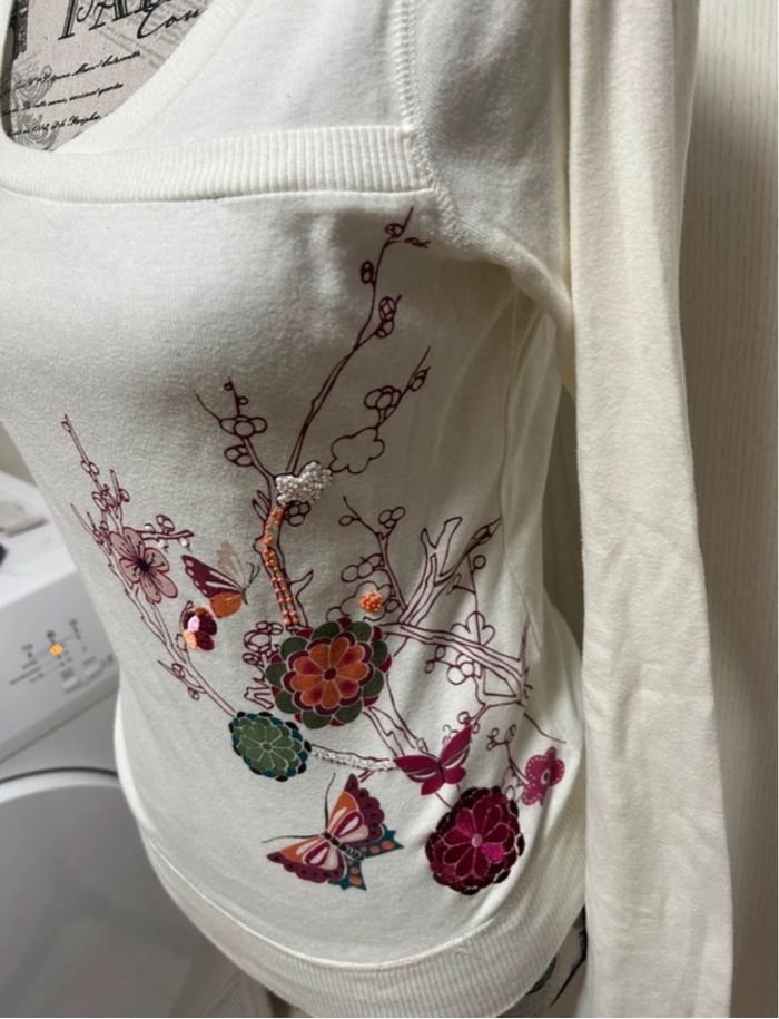 pull blanc fleuri avec perle bershka taille M - photo numéro 3
