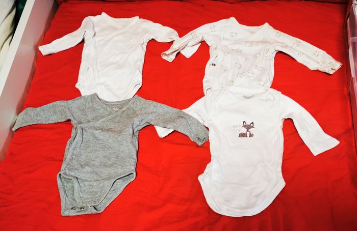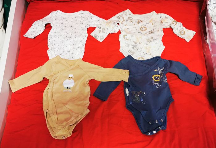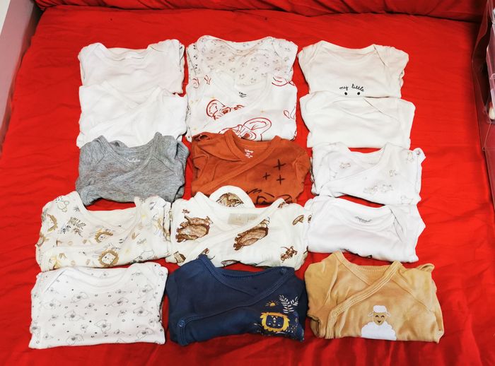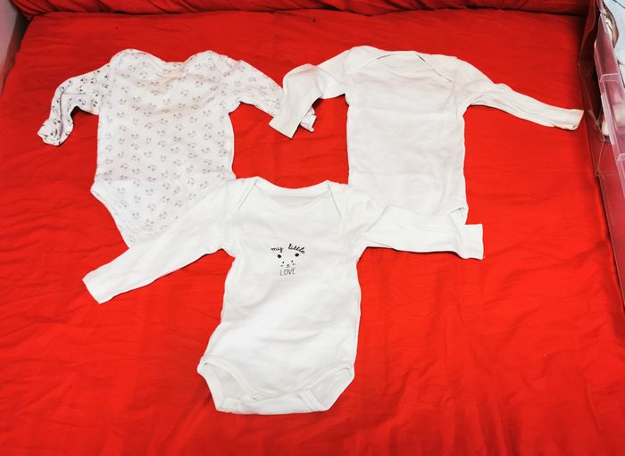 Lot de 15 bodies manches longues divers marques en bon état taille 3 mois. Peut comporter traces d'usures ou imperfections.