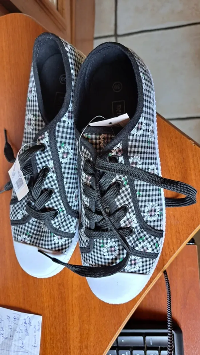 Ballerines vichy noires et blanches - photo numéro 1