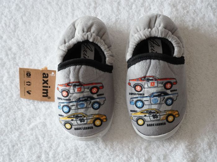 Chaussons velours gris fantaisies neufs pour enfants Pointure : 27