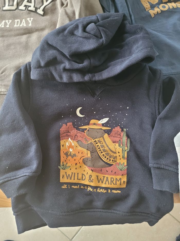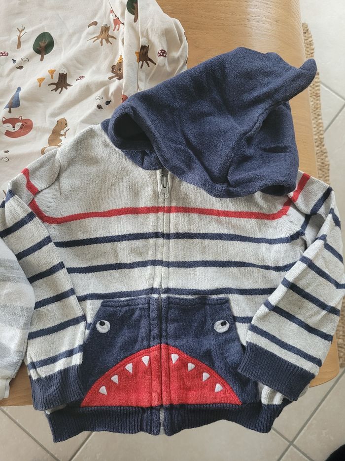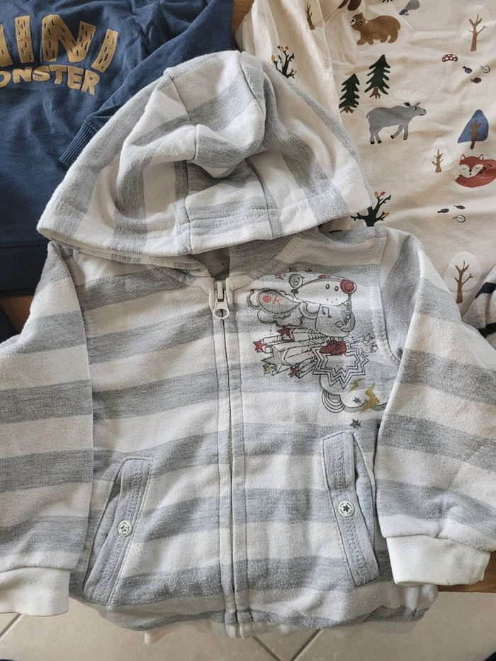 Vends lot de 6 hauts hiver : - 2 gilets zippés - 1 pull à capuche - 2 pulls (un 12 mois mais qui taille grand) - 1 tee-shirt ML animaux Marques diverses : kiabi, H&M, mini gang, catimini. En bon état, sans trou, ni tâche