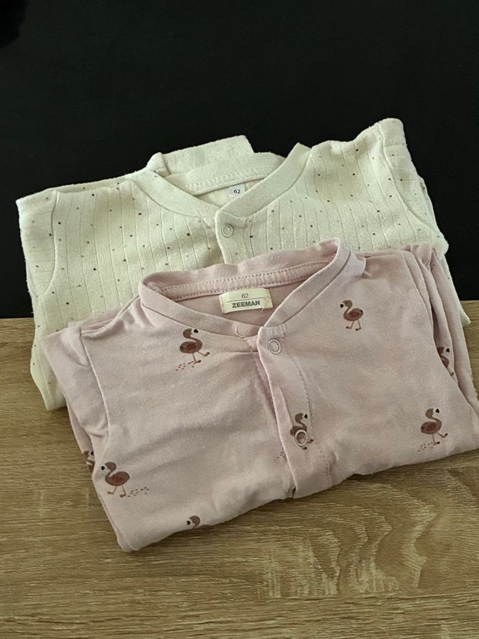 2 pyjamas sans pieds Zeeman. 3 mois (62cm), porté plusieurs fois. Très bon état.