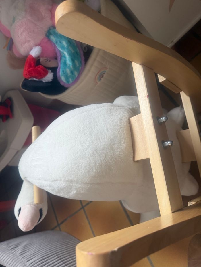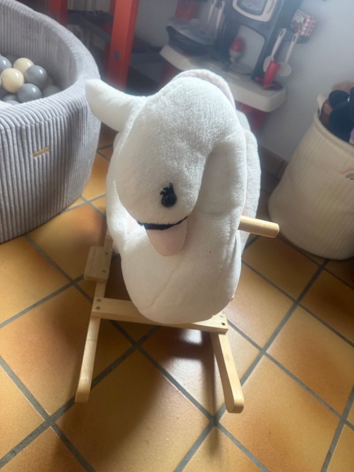 Envoi que part la poste car colis trop volumineux ❗️ Je vend cygne à bascule en bonne état il y a juste quelque petit tache et il est un peu abîmé au niveaux du bois de la bascule au niveau du cygne à basculent acheter chez atmosphera je n’ai plus le carton