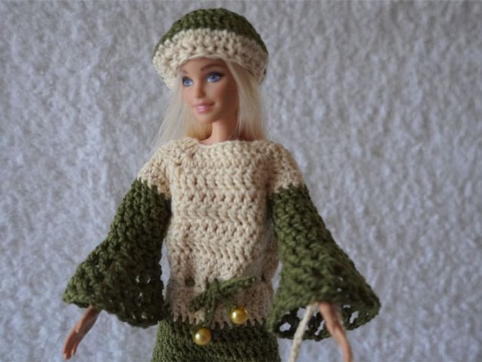 Barbie et sa jolie combinaison kaki/écru - photo numéro 1