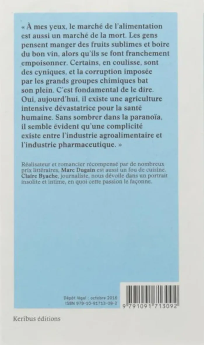 Dans ce volume la journaliste Claire Byache dresse le portrait de l'écrivain Marc Dugain : les premiers souvenirs de cuisine avec sa Grand-Mère, les influences paysannes et la chaleur des brasseries parisienne. C'est une véritable peinture culinaire qui se dessine sous les mots de la journaliste