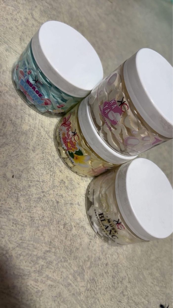 - 5 nuage sucré - 4 shamallow - 3 musc blanc - 3 Monoi island 5€ l’unité