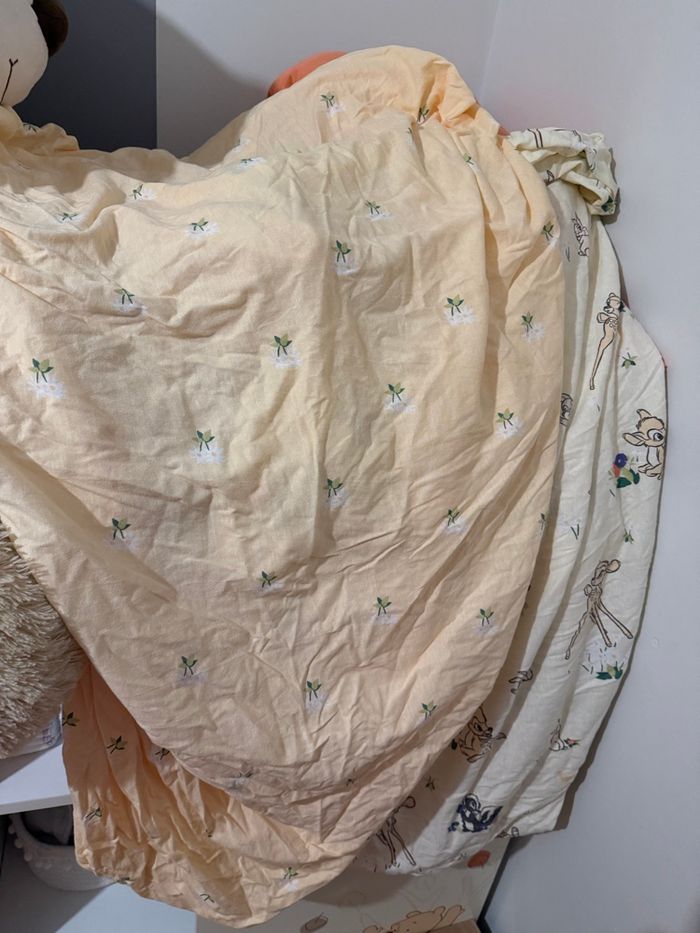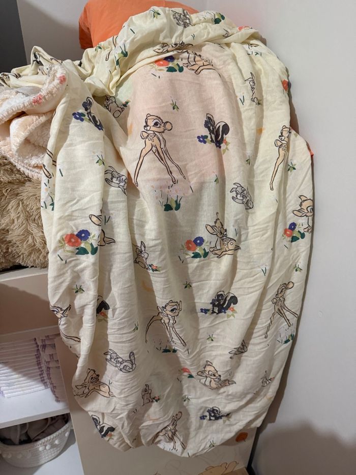 Vend un lot de housse de couette Bambi Disney neuve il y’a juste une petite tache acheté comme ça les deux housse de couette font 60-70x 120-140 cm
