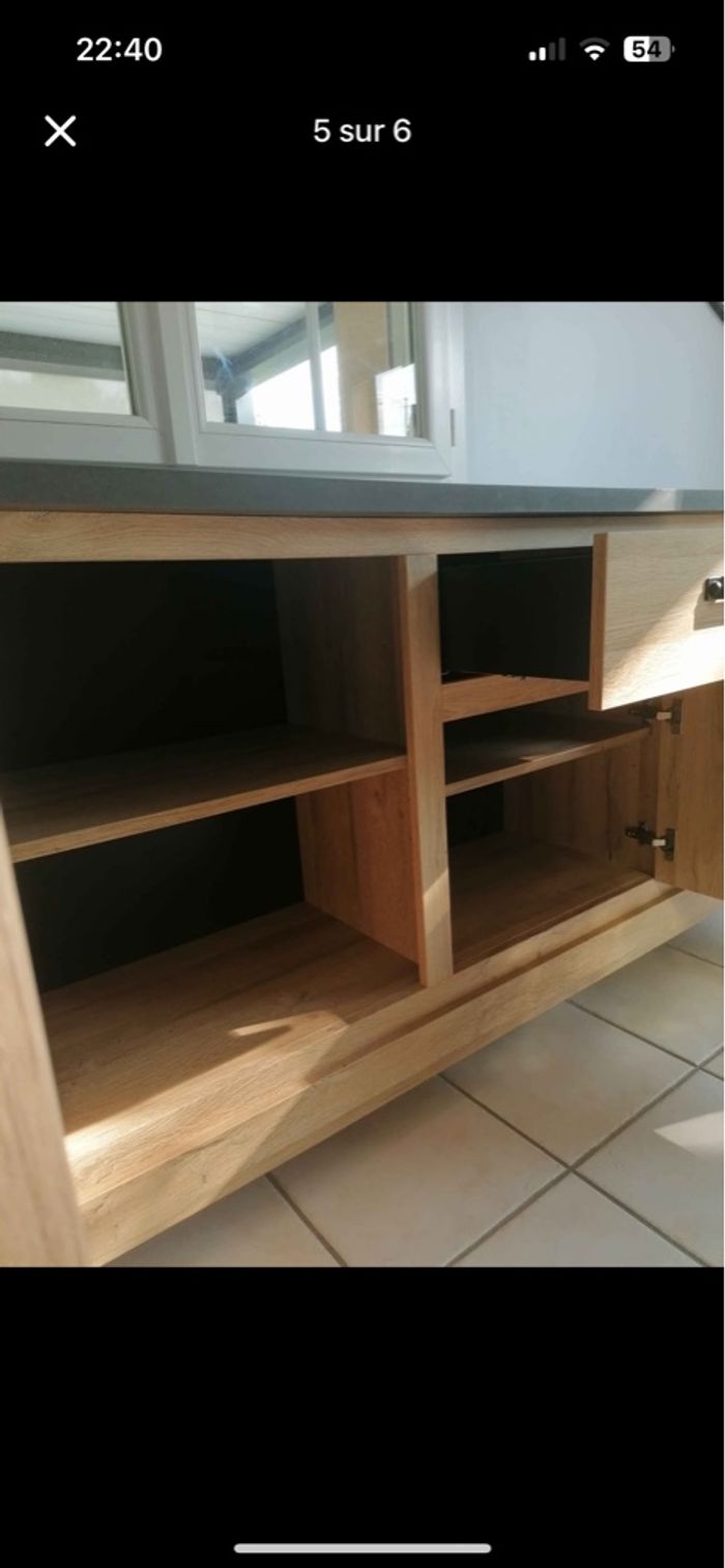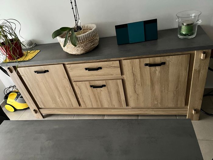 Meuble comme neuf bien entretenu. Couleur chêne clair et ciment. Vends l’ensemble