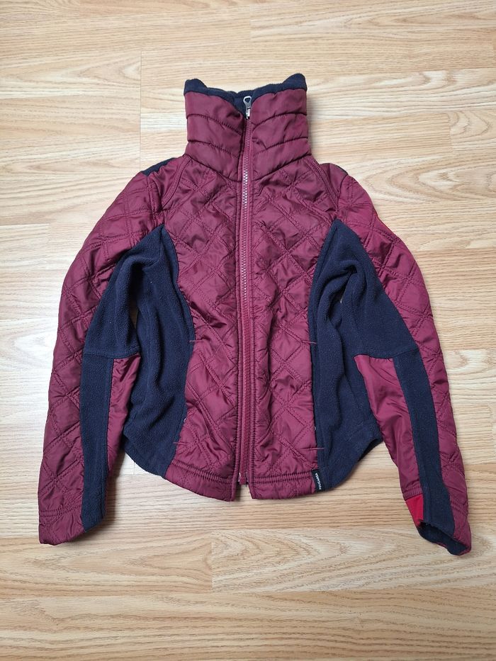 Polaire équitation bi-matiere FOUGANZA 5 - 6 ans bordeau et bleu marine 2 poches intérieures