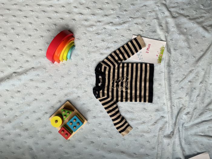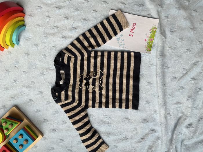 pull rayé marine et or à paillettes 3 mois lulu castagnette - photo numéro 1
