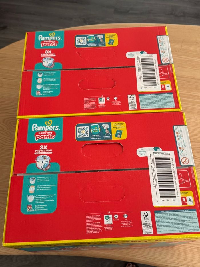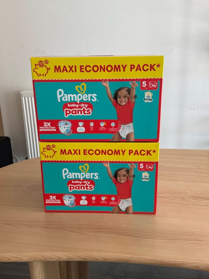 Deux cartons neufs de couches pants Pampers baby dry taille 5, soit 172 couches