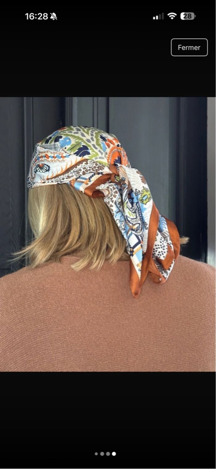 . Foulard imprimé fantaisie . 70x70 cm . Sur la tête, autour du cou ou autour de la taille . Polyester . Touché satiné #foulard #foulardstylehermes