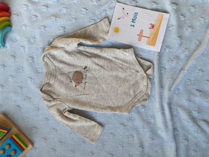 body manches longues beige gris dessin devant 3 mois in extenso - photo numéro 7