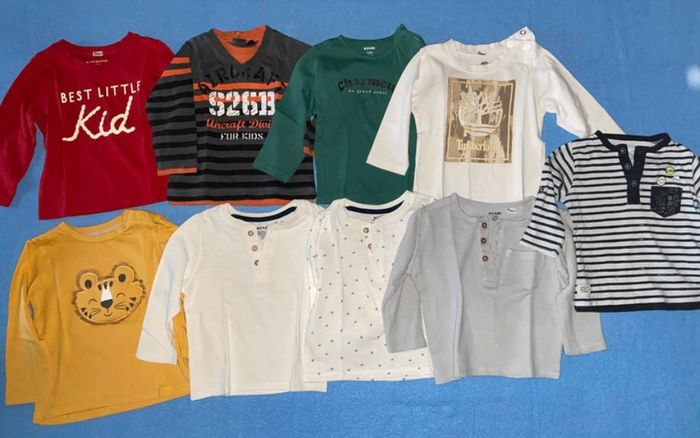 Lot vêtements garçon Taille 12 mois Tee-shirts manches longues Tee-shirts manches courtes Jeans Pantalons Joggings Gilets Vestes à capuches Manteau Pyjamas grenouillères