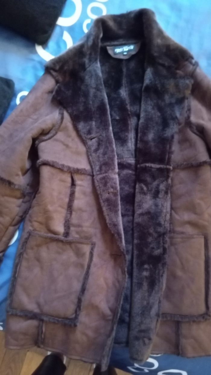 Manteau veste en daim , fourrure marron chocolat intérieur velours haute qualité et chaude ,neuve Marque italienne Tutte fan cosi Taille 2 équivalent à un 40