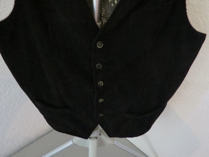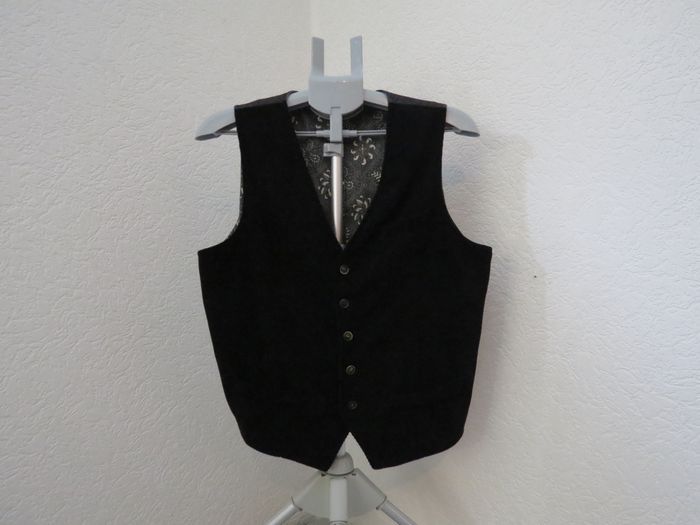 Superbe gilet noir chic, coupe élégante et intemporelle. Idéal pour une tenue habillée, un look casual chic ou une occasion spéciale (soirée, mariage, cérémonie, travail stylé). 🖤 Détails qui font la diff’ Devant noir sobre et classe Dos avec doublure à motif raffiné, très élégant Boutonnage discret Coupe ajustée qui met bien la silhouette en valeur 🧵 Composition A : 100 % polyester B : 100 % coton C : 100 % polyester 📏 Taille : M 🏷️ Fabrication : Made in Italy 📦 État : très bon état (voir photos), propre, bien entretenu 💡 Se porte aussi bien avec une chemise qu’un t-shirt pour un style moderne et tendance. 📬 Envoi rapide & soigné 💬 N’hésite pas à m’écrire pour toute question !