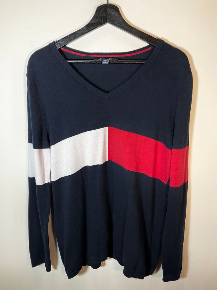 Pull col V bleu marine pour femme Tommy Hilfiger taille L 607 - photo numéro 1