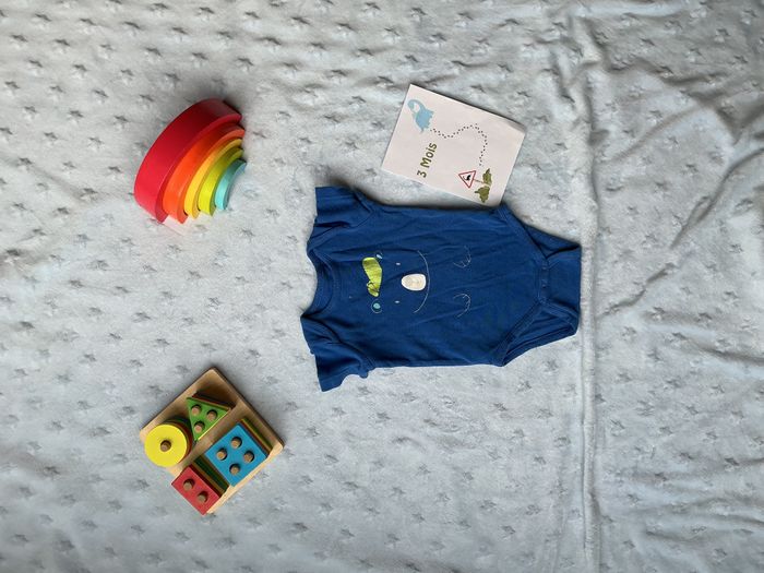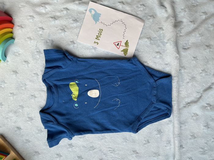 body manches courtes bleu dessin devant 3 mois gémo - photo numéro 1