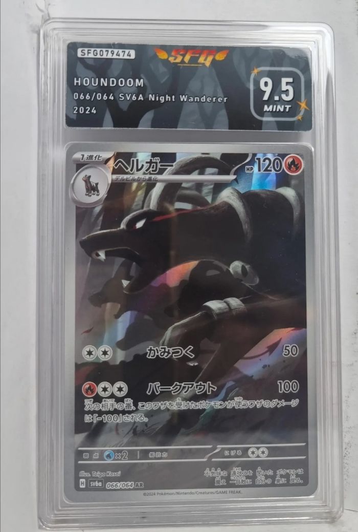 Je vends cette carte Pokémon Houndoom Démolosse 066/064 en édition Gradée 9.5. - Type de produit : Carte de jeu de collection - Personnage : Houndoom - Numéro de série : 066/064 - Certification : Gradée SFG 9.5 (état neuf) État neuf