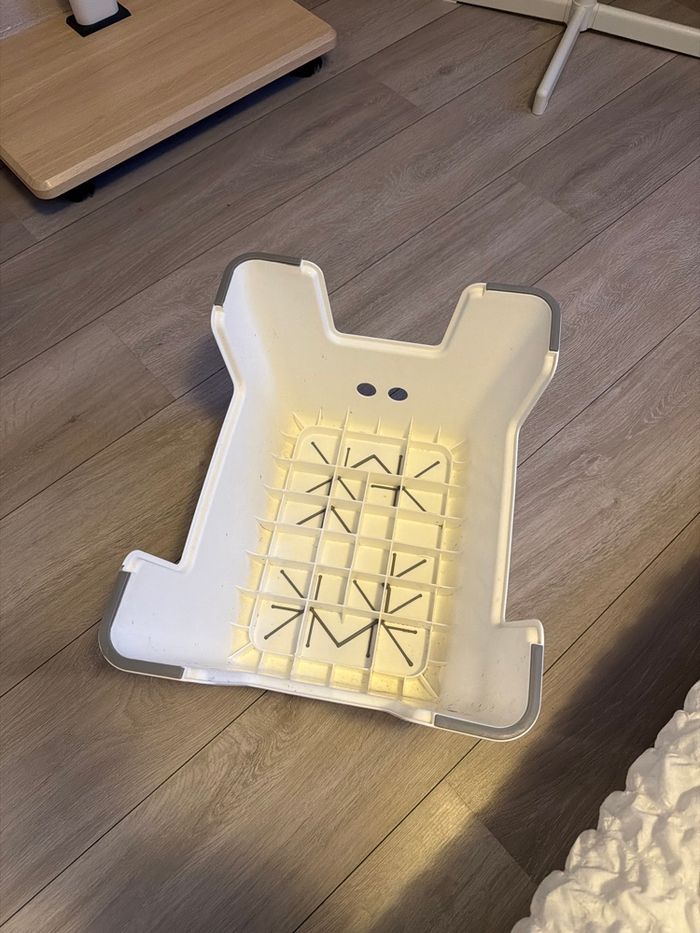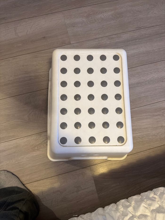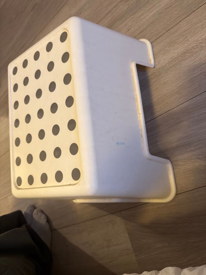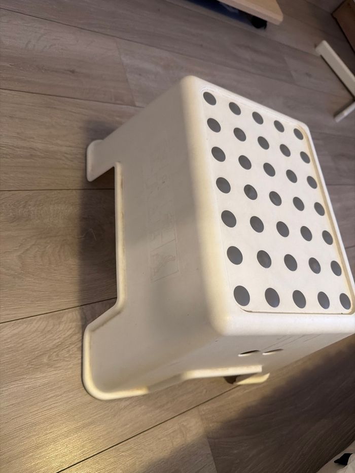 Vont se tabouret de salle de bain pour enfants antidérapant qui provient de chez IKEA. Il a besoin d’un petit coup de propre, mais il est intacte.