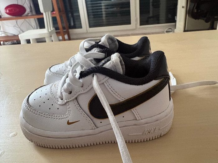 Je vends les chaussures de mon fils, air force one blanche taille 21,5cm. Très peu utilisé