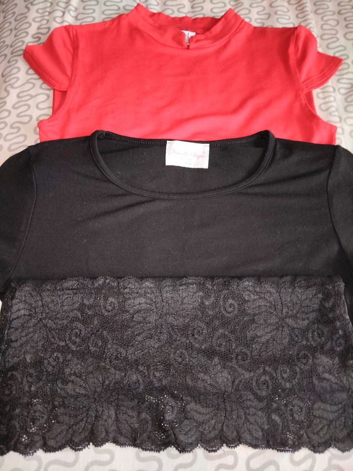 Jolis tops neufs dentelles Très extensibles Un rouge Un noir De marque Taille XS 34 / 36