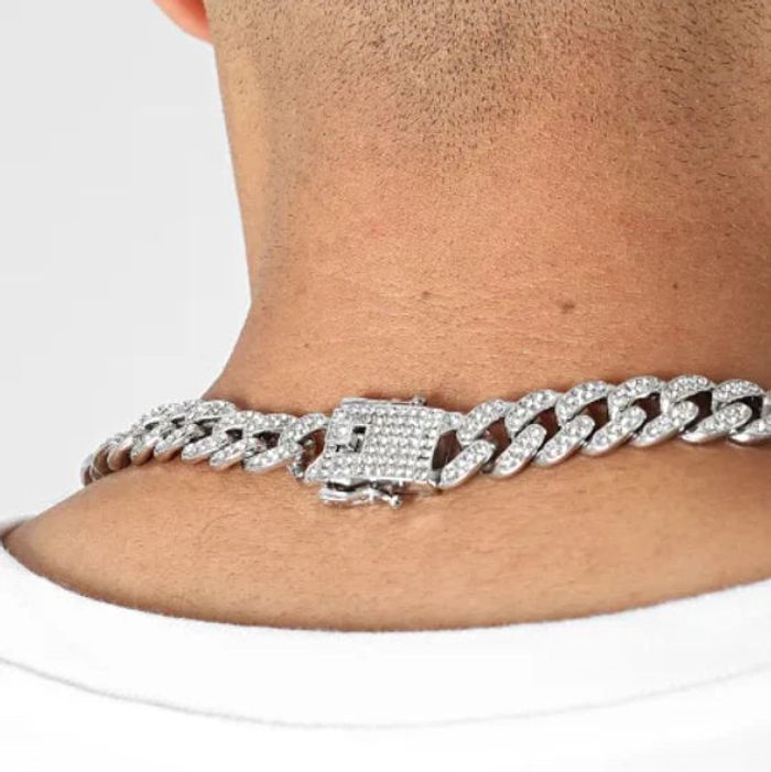 • Collier chaîne tendance avec strass • Longueur : env. 45 cm • Fermoir classique Acier inoxydable