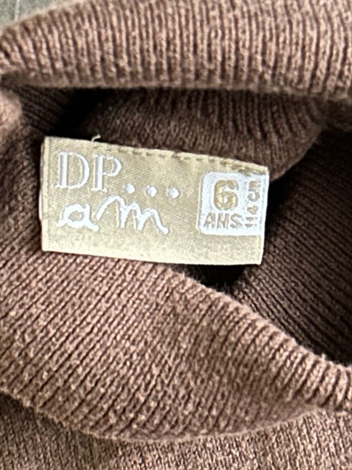 pull fin pour fille, en maille, couleur marron, de la marque DPAM. Taille 6 ans. Col roulé et tricot fin. En très bon état.