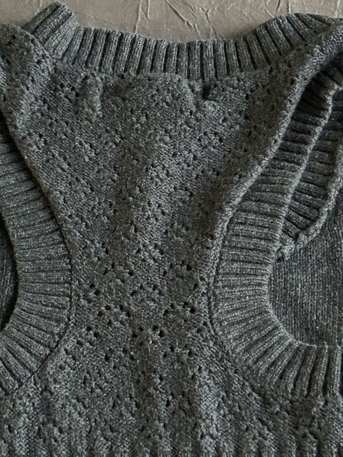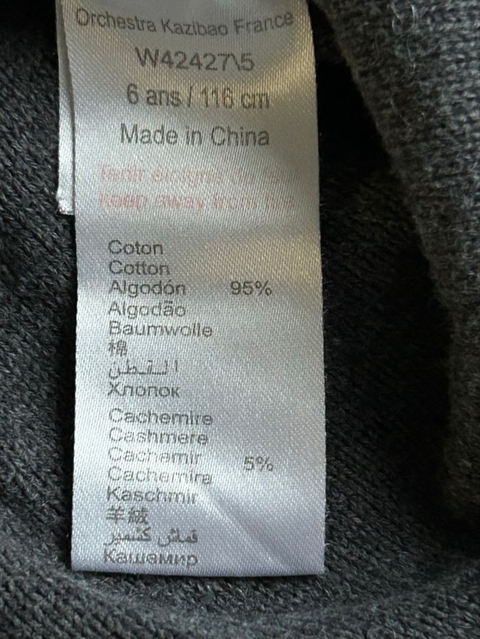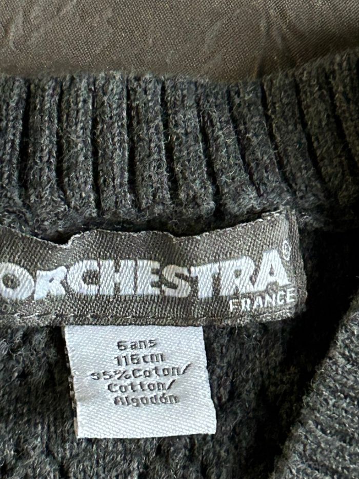 pull long fille, forme tunique sans manches style débardeur. Couleur gris anthracite. Taille 6 ans, de la marque « Orchestra ». En tricot avec partie ajourée dans le dos et poche devant. En excellent état.