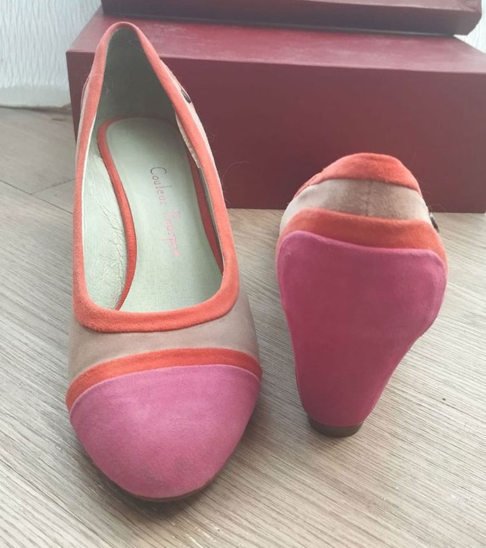 paire escarpins compensés beige et rose Couleur Pourpre pointure 38 cuir nubuck - photo numéro 1