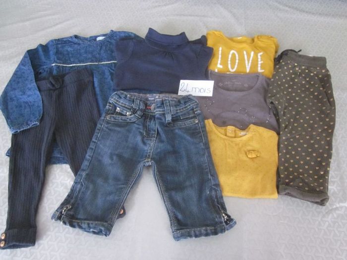 24m, pantalon + 4 hauts ml + blouse ml + legging + pantacourt, sergent major, kiabi, miss kids, orchestra