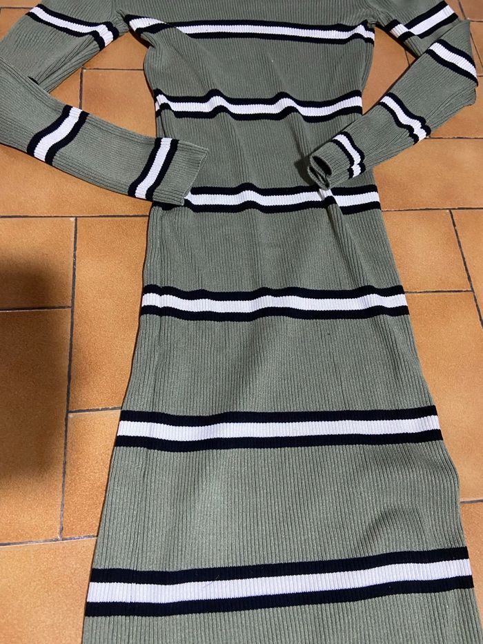 Belle robe longue à rayure kaki blanche et noir s - photo numéro 4