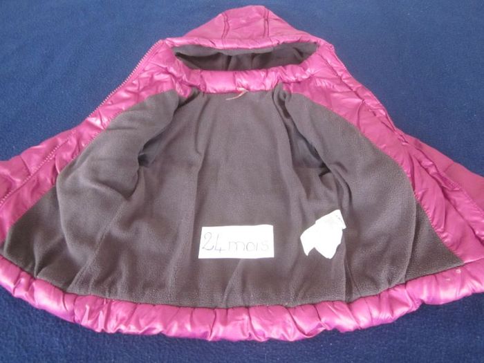 24m, doudoune à capuche, bien chaude, orchestra, légère auréole en bas de la glissière
