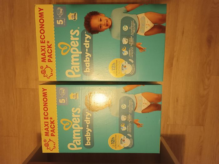 Bonjour Je vends un lots de 2 cartons pampers Baby dry taille 5 188 Couches au total Envoi rapide