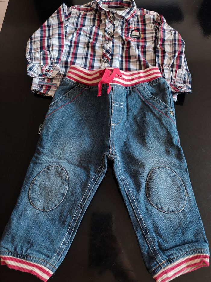 Ensemble Sergent Major taille 9 mois avec une chemise manche longue et un jean, très peu porté