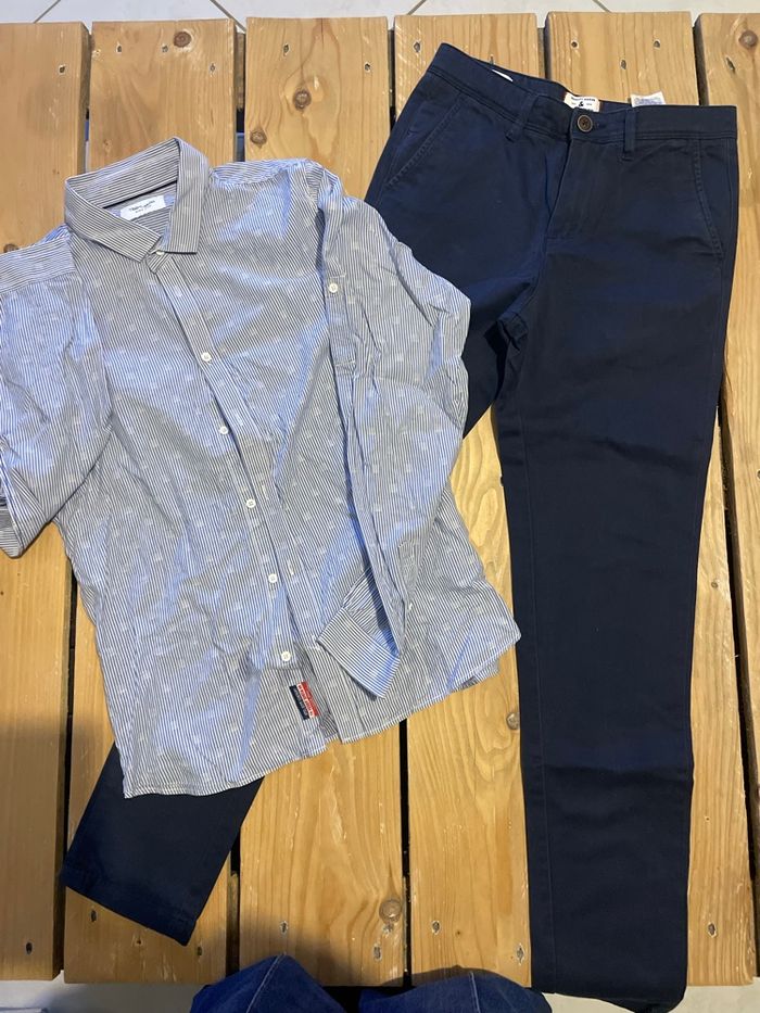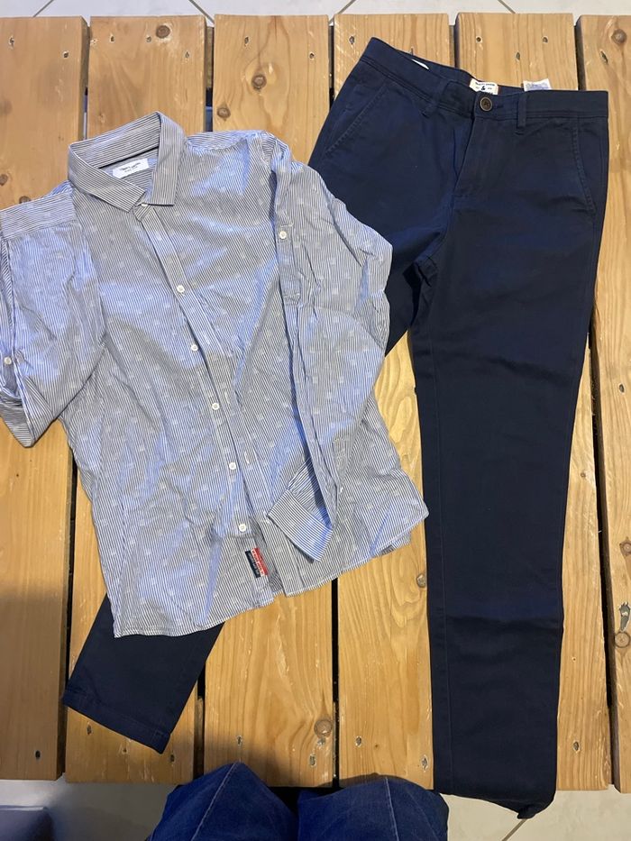 Chemise rayé bleu Teddy Smith taille S Pantalon chino bleu marine taille 27/32 jack & jones