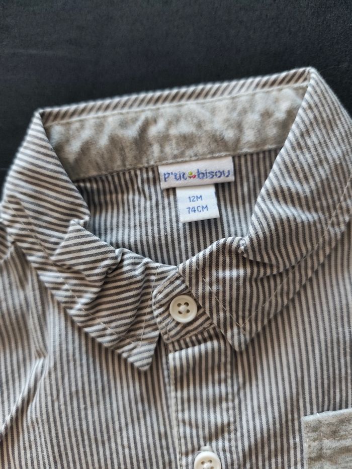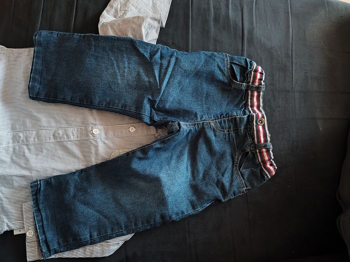 Ensemble P'tit Bisous taille 12 mois avec une chemise a manche longue et un jean, très peu porté
