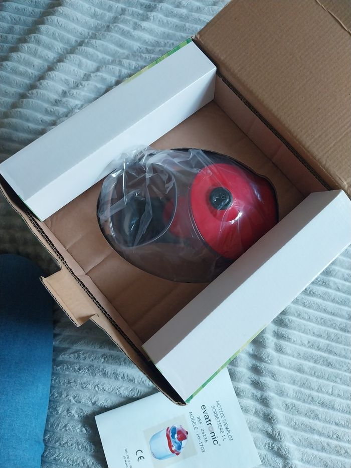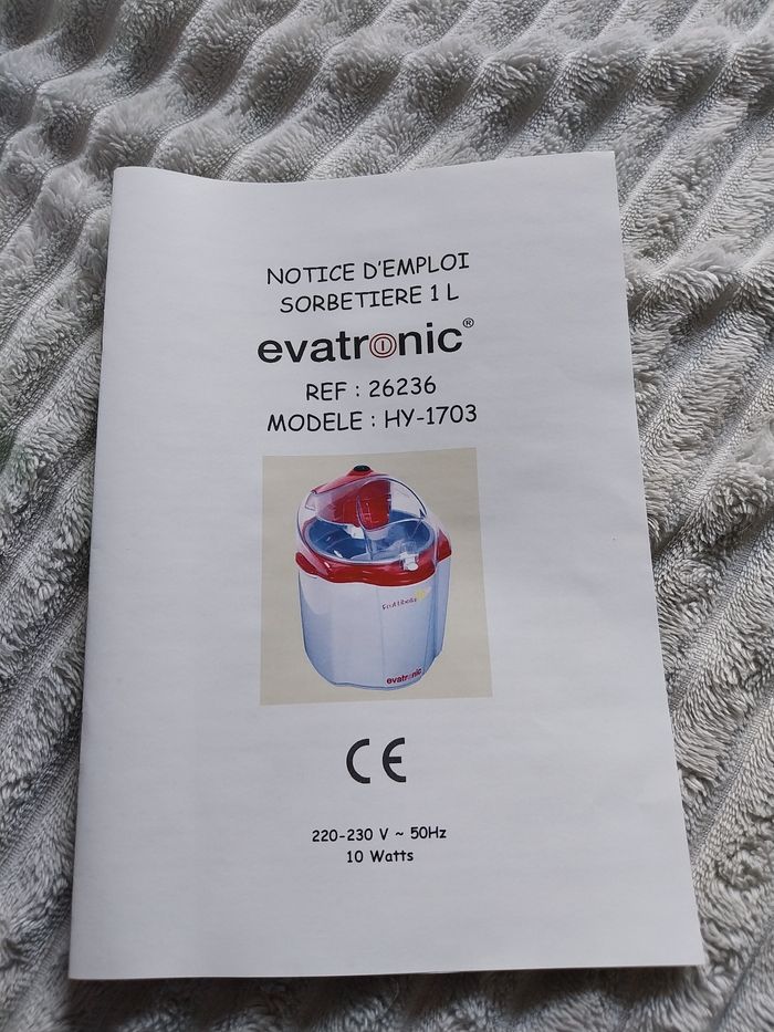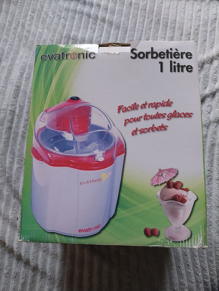 Sorbetière de la marque evatronic. Elle est neuve et à jamais servie.