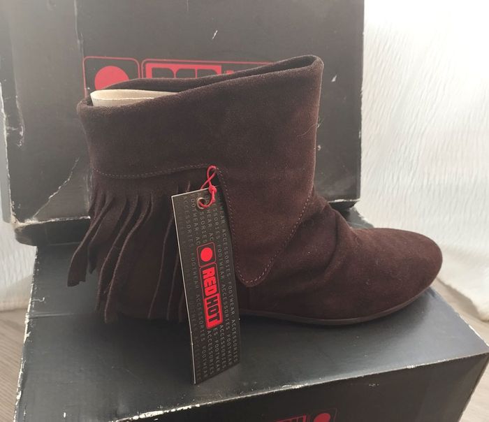 paire de bottines boots à franges cuir nubuck neuve marron pointure 38 Red Hot - photo numéro 1
