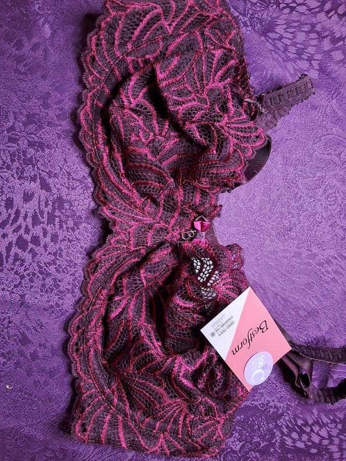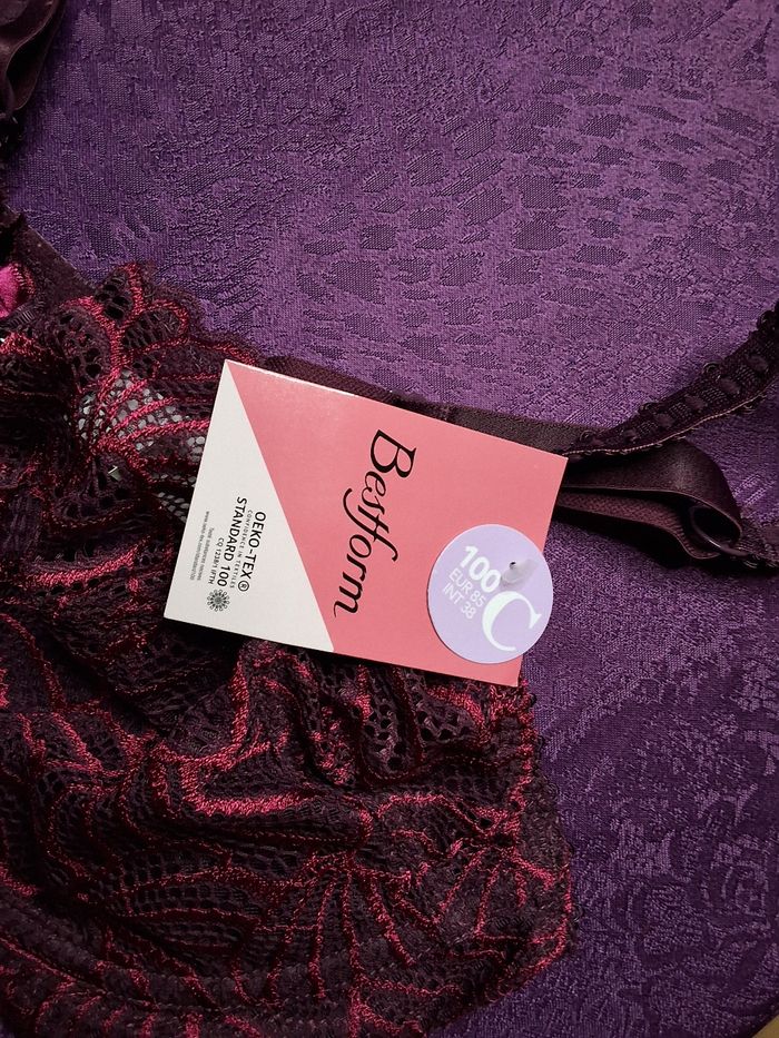 Soutien-gorge F10, taille 100C, marque Bestform, couleur bordeaux et rose, entre deux, large et confortable, bretelles larges, réglables et dos cheminées, matière douce et agréable à porter, dos et côté large pour apporter confort et rassurance, armature solide pour un soutien parfait. Neuf avec étiquette