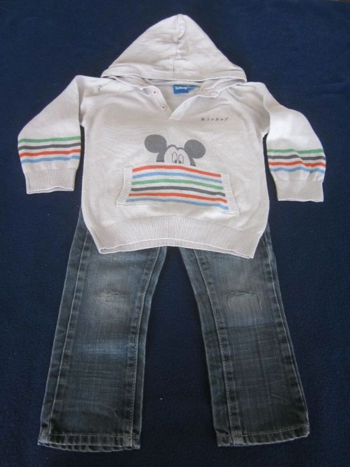 24m, pull à capuche disney + jean troué earth bound