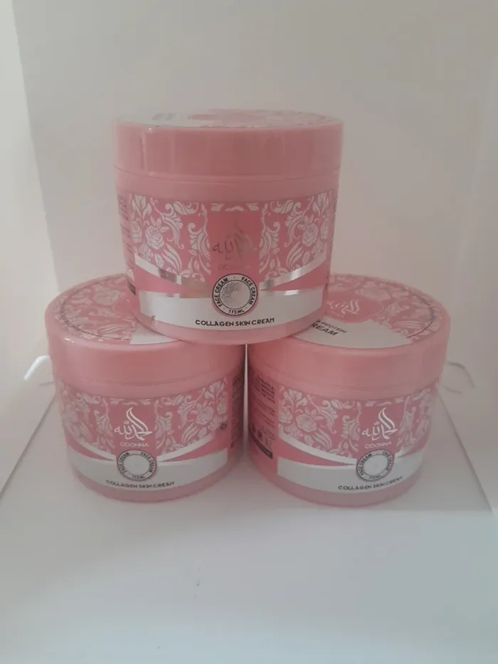 6€50 une Crème au Collagène Parfum Yara Description du produit Découvrez la nouvelle crème au collagène de la collection Dubai, une formule luxueuse pensée pour sublimer la peau du visage. Présentée dans un pot rose élégant aux motifs orientaux raffinés, cette crème offre une expérience sensorielle unique, mêlant soin intensif et parfum envoutant. Enrichie en collagène, elle aide à raffermir, hydrater et lisser la peau tout en laissant un toucher doux et soyeux. Sa texture fondante pénètre rapidement, idéale pour une routine beauté quotidienne. 🌺 Parfum : Yara – Notes Olfactives Une fragrance féminine, douce et addictive : • Notes de tête : fruits exotiques, douceur lactée 🍈🥛 • Notes de cœur : fleurs blanches, jasmin, délicatesse poudrée 🌸 • Notes de fond : vanille, musc, bois doux et caramel subtil 🍮🌿 Un parfum chaleureux, crémeux et irrésistiblement réconfortant.