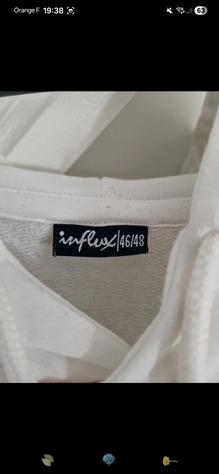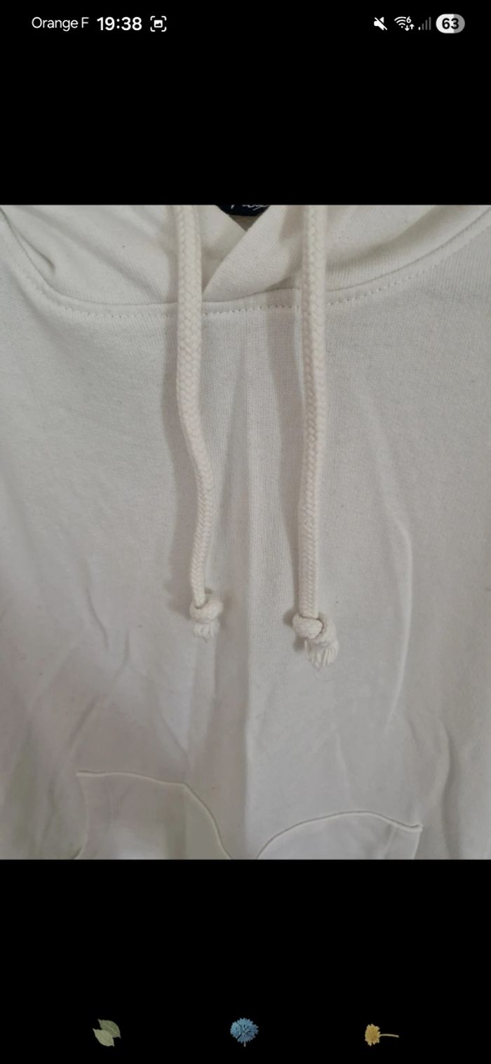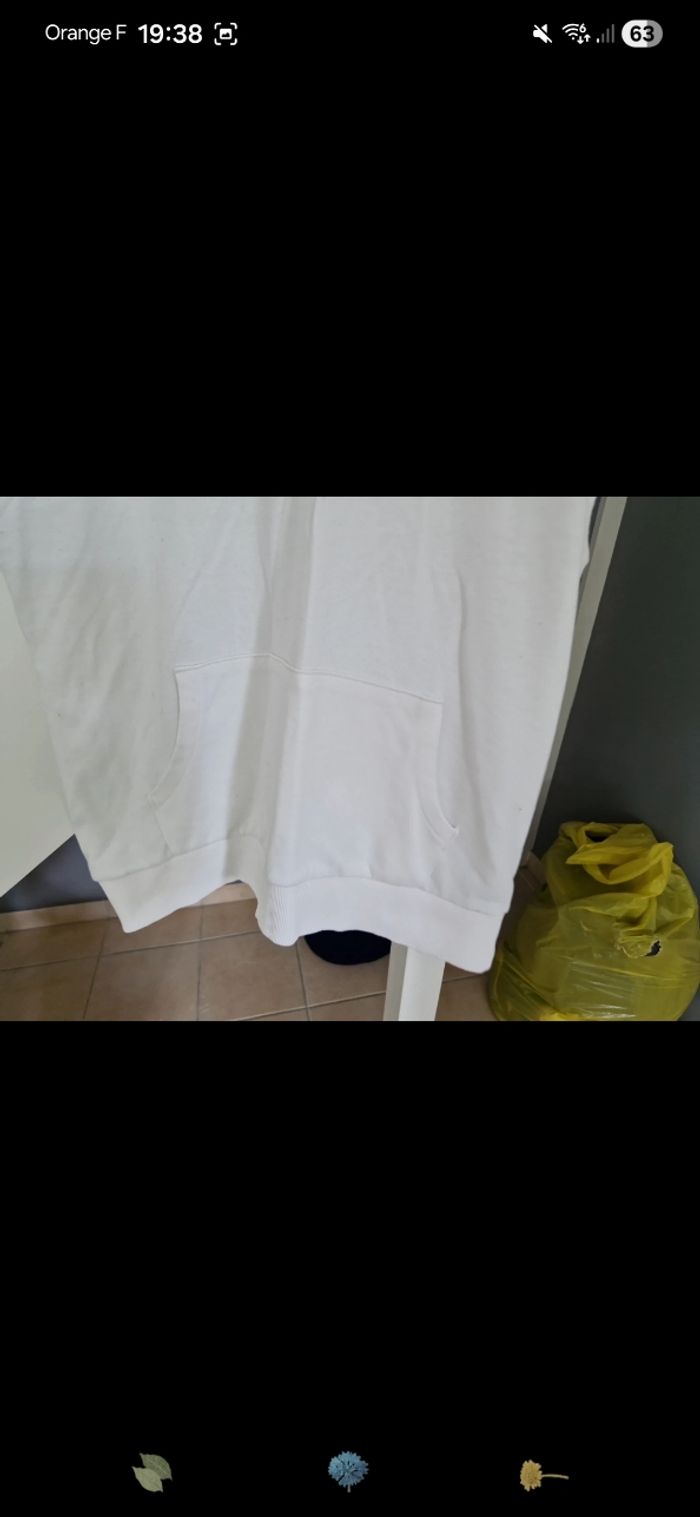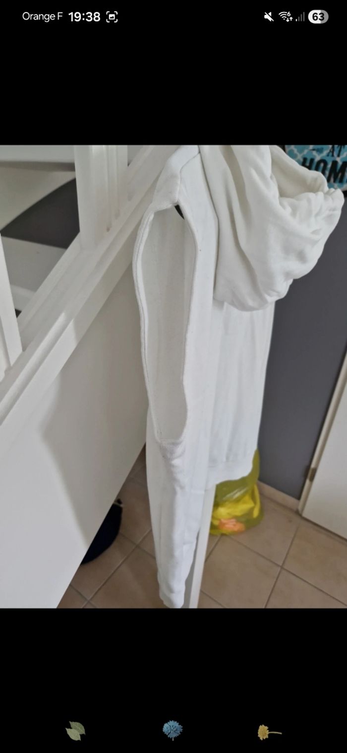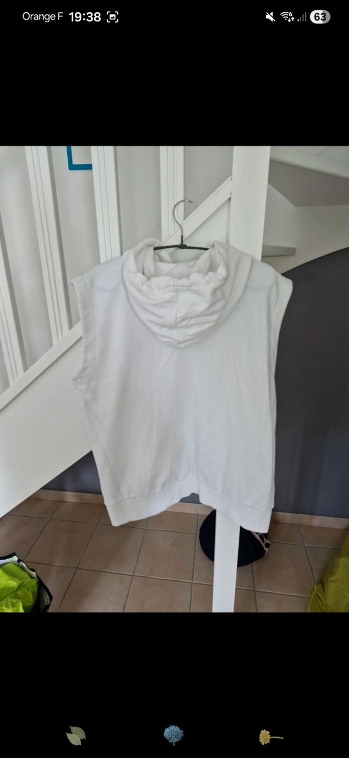 Sweat sans manche blanc à capuche, poche sur le devant. Bonne état. 57cm de aisselles à aisselles 64cm de longueur