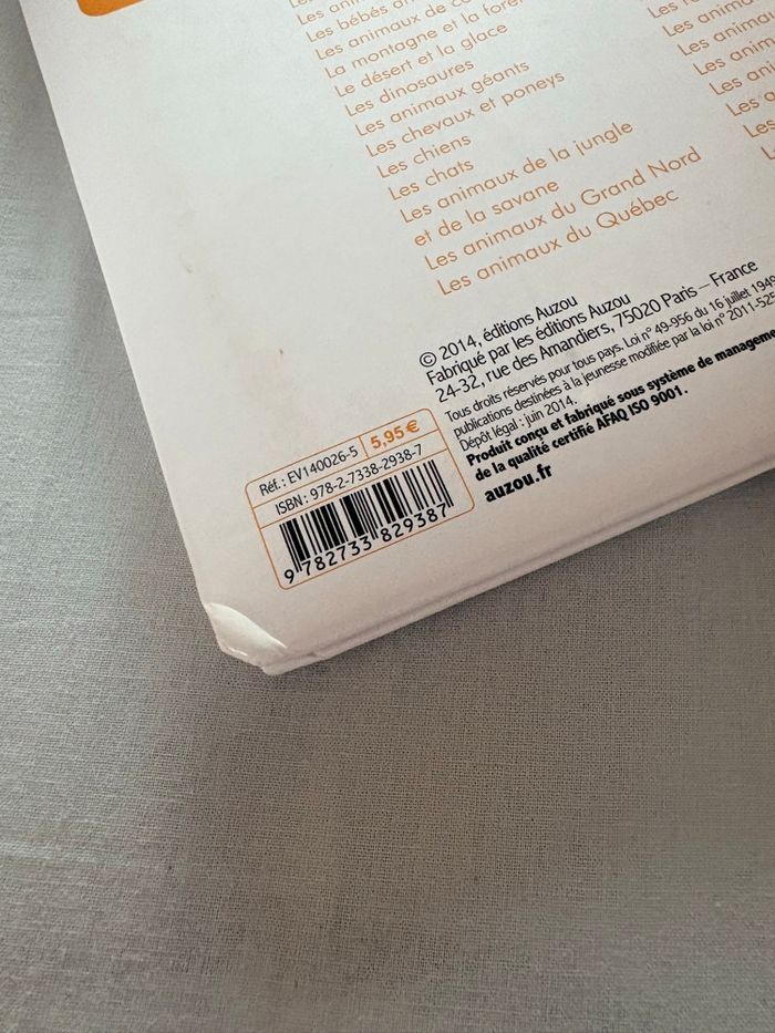 Vend un livre en bon état, il y a la première page de déchiré voir photo. Les coins des livres sont un peu abîmés mais il reste en bon état à l’intérieur. Marque de chez auzou
