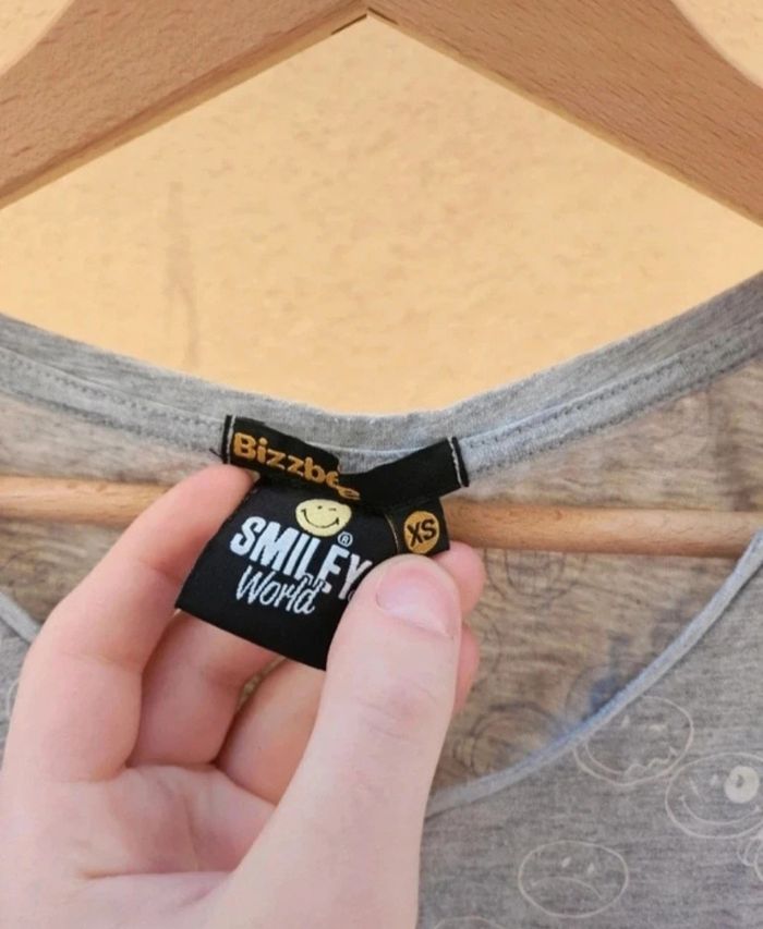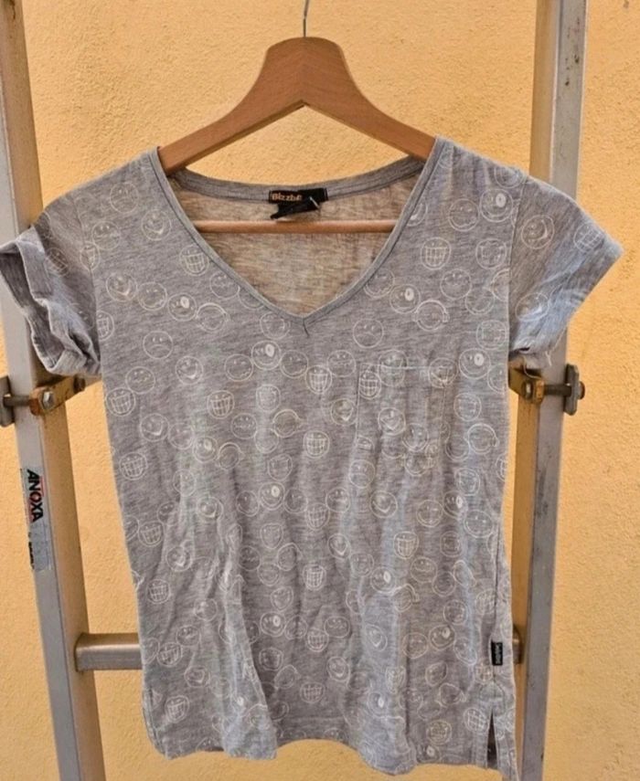T-shirt manche courte gris smiley Taille xs Bizzbee Très bon état Aucun défaut Prix négociable Remise en main propre possible